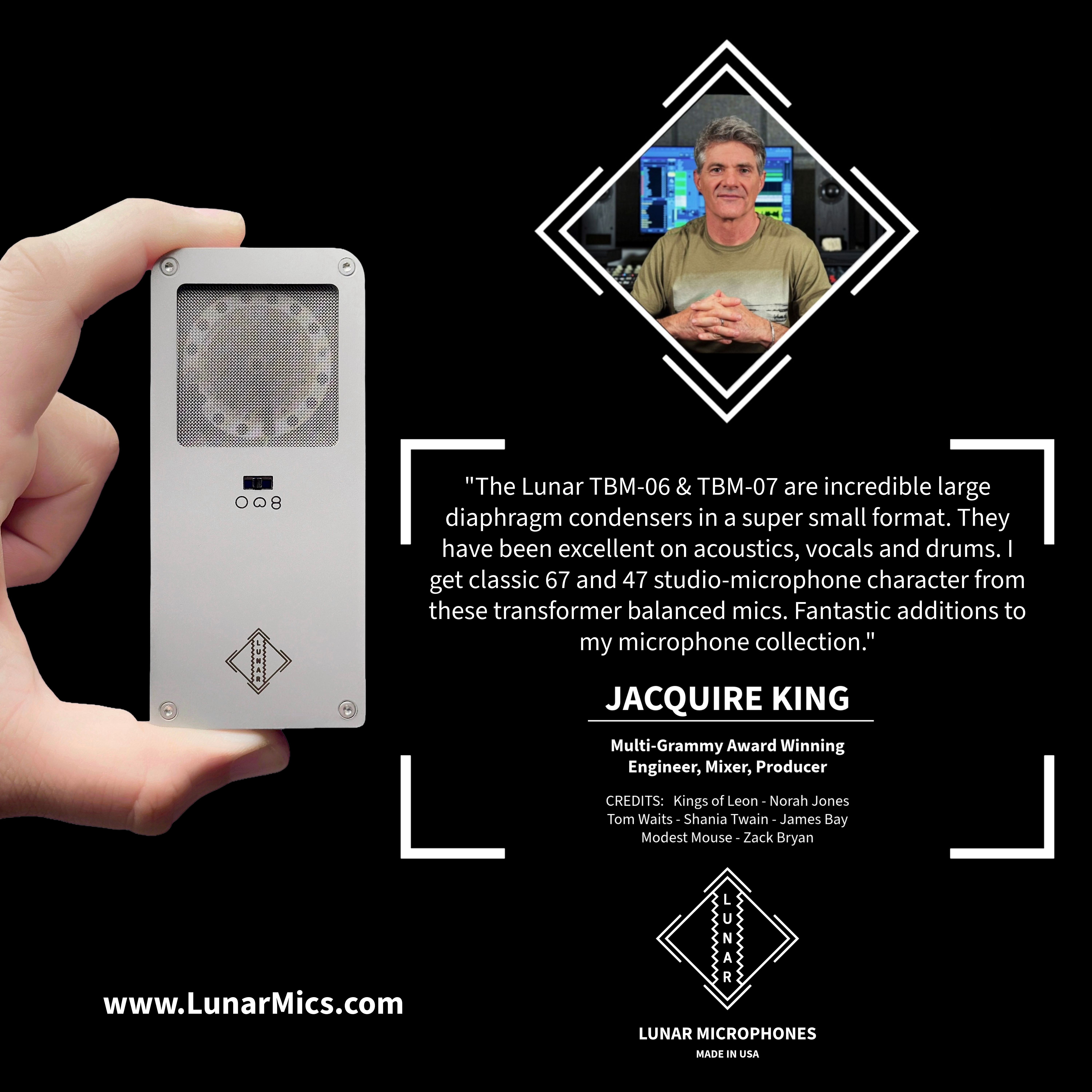 The LUNAR TBM Series are "The World's Smallest Transformer-Balanced Large Diaphragm Condenser Microphones". CNC milled out of Stainless Steel right here in the USA, It's built to withstand... Well possibly a trip to the moon! Its compact Patent Pending design is a break from the usual size of similar sounding microphones. It stands at 4.2 inches tall (106mm), 1.9 inches wide (48mm), and 0.8 inches deep (21mm).